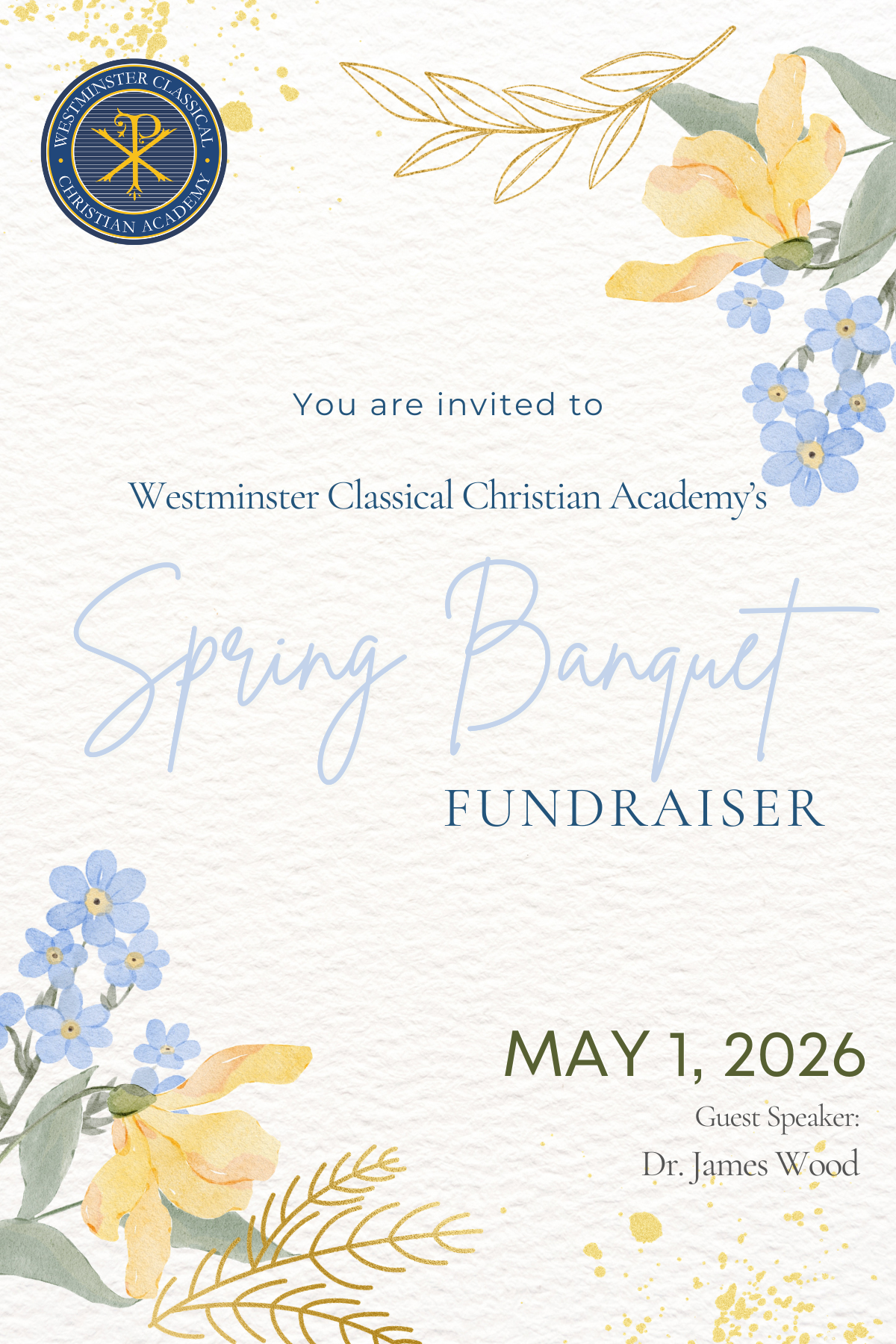 You are invited for a lovely night out in support of Classical Christian education! Join us for an uplifting time as we hear from Dr. James Wood, and enjoy a short performance from some of our students. Tickets are now available for purchase so please reserve yours today. We can't wait to see you there!